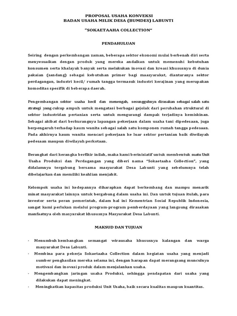 Kumpulan contoh proposal usaha mulai dari proposal makanan, kerajinan, cafe, dll yang mencakup penjelasan produk, pemasaran, hingga analisis . Sebelum terlalu jauh ke contoh proposal pengajuan dana untuk usaha kecil dan menengah ukm tersebut pastikan anda sudah memahami arti kata dari . Berikut ini informasi tentang contoh proposal usaha kecil menengah minuman, contoh proposal ukm kewirausahaan dan temukan jawaban anda disini. Proposal usaha kecil minuman deskripsi pengenalan usaha nama kelompok. Target pasar menjangkau semua kalangan mulai dari anak kecil hingga dewasa serta berbagai profesi dan kelas sosial.